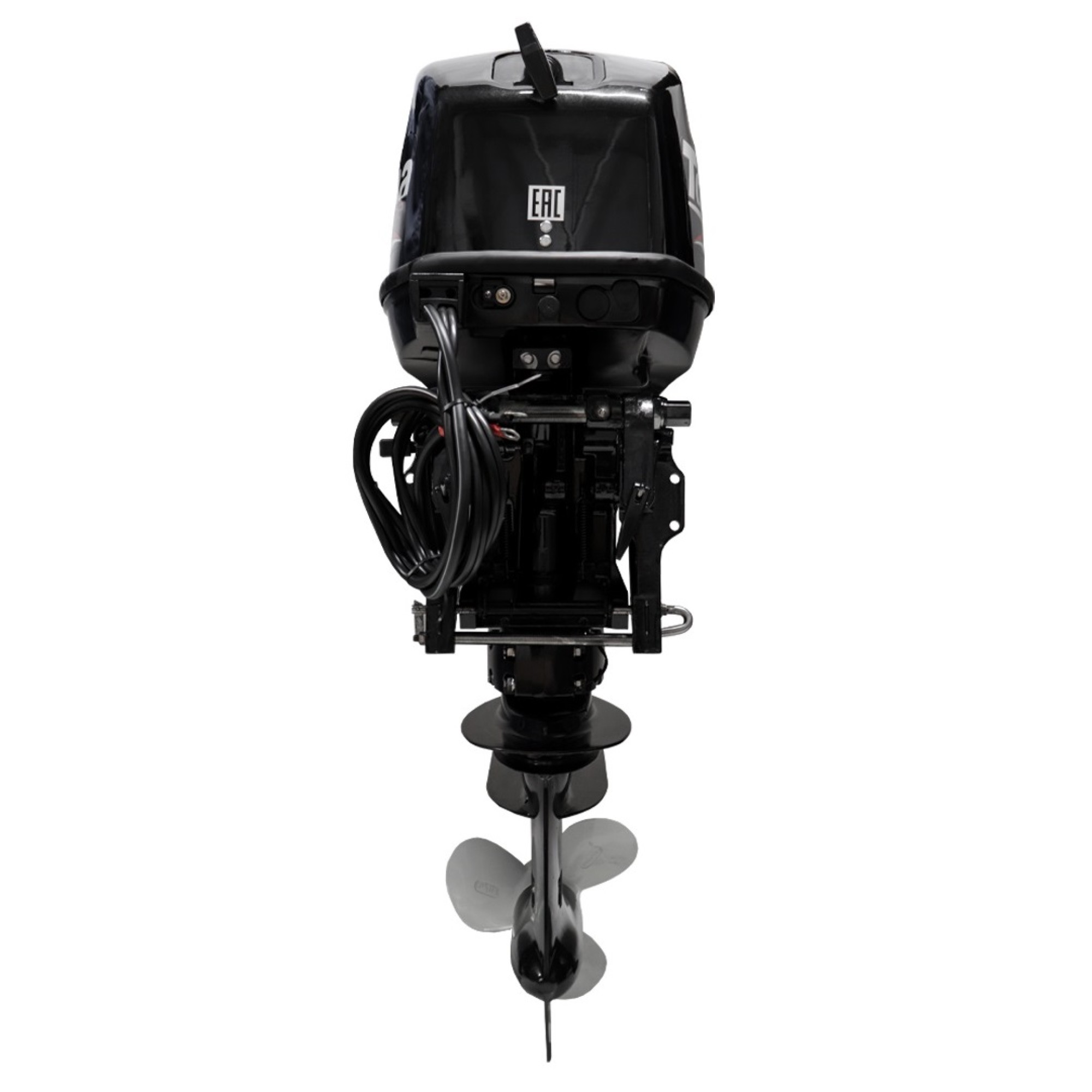 Комплект поставки включает всё необходимое для монтажа на консоль лодки: подвесной мотор, блок дистанционного управления с крепежом, два троса управления, рулевую тягу с кронштейном, выносной топливный бак на 24 литра, топливный шланг с грушей, шнур аварийного запуска, запасные свечи зажигания BPR7HS (2 шт.), крыльчатку водяного насоса, прокладки, чеку безопасности и набор ручного инструмента.